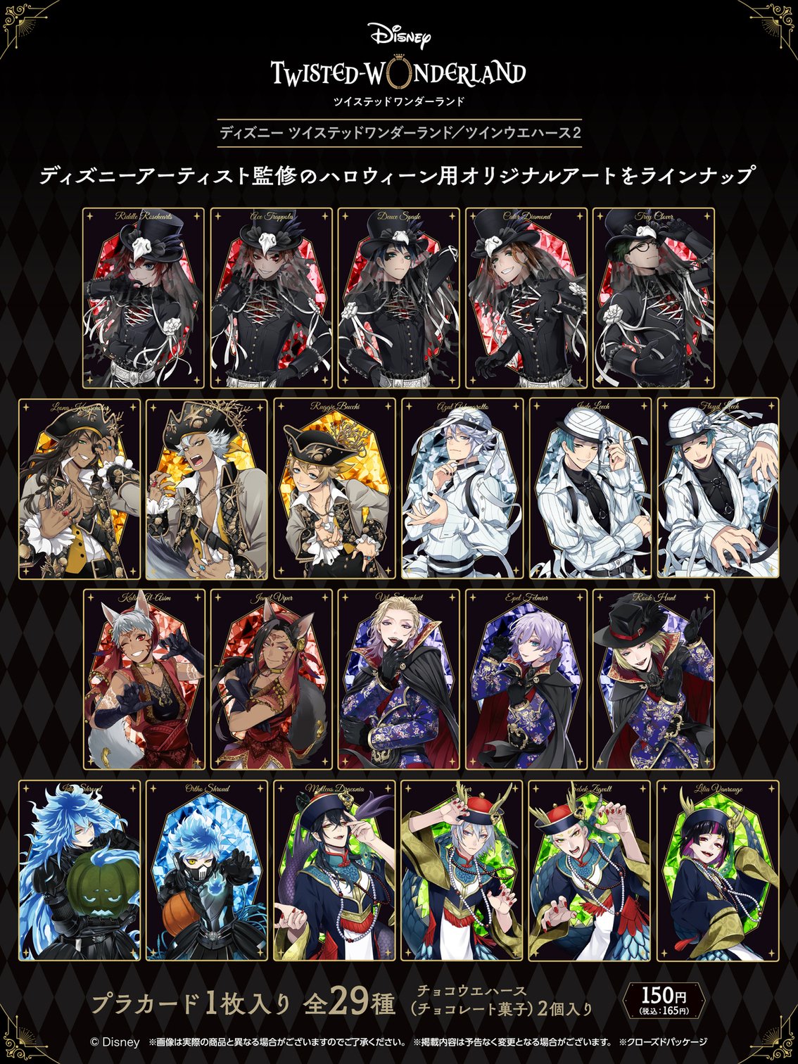 バンダイ キャンディ 公式 On Twitter ディズニー ツイステッドワンダーランド ツインウエハース2 22年9月発売 ディズニーアーティスト監修のハロウィーン用オリジナルアートの 全22寮生のカードを最速収録 裏面は本商品限定の表情をしたアートも楽しめます